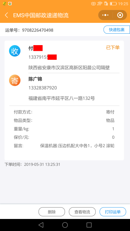 5月31日東莞客戶快遞單